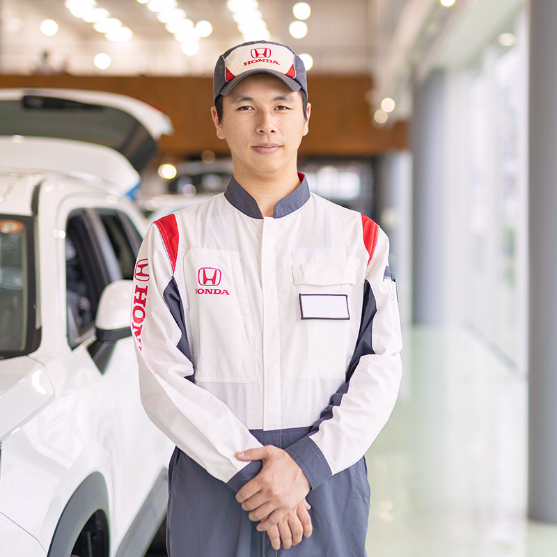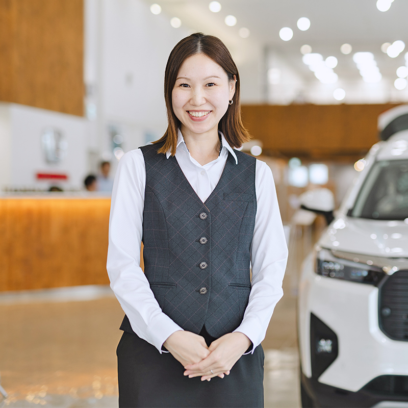 「地元で働きたい」「車が好き」「人と話すのが好き」 ー そんな想いから、この会社に入社しました。Hondaというブランドの信頼感、そして地域に根ざした企業であることに魅力を感じたのがきっかけです。面接でお会いした先輩方の雰囲気もとても良く、『この人たちと一緒に働きたい』と強く思ったのを覚えています。入社前は、営業職というと個人の成果が重視される厳しい世界を想像していましたが、実際には店舗全体が協力し合い、和やかな雰囲気の中で働けています。ただ、販売後の事務作業が想像以上に多く、最初は驚きました。でも、それもお客様に安心していただくために必要な大切な仕事。今ではやりがいを感じています。入社後は、グループ全体での研修やHondaの研修を通じて、営業の基礎をしっかりと学ぶことができました。店舗に配属されてからは、店内での接客や接遇を中心に、先輩のサポートを受けながら実践的に学んでいます。訪問営業はなく、店舗にご来店いただいたお客様への対応が主な業務です。また、仕事に必要な資格取得に向けての時間も確保されており、会社からの支援体制も整っているため、安心してスキルアップに取り組めています。