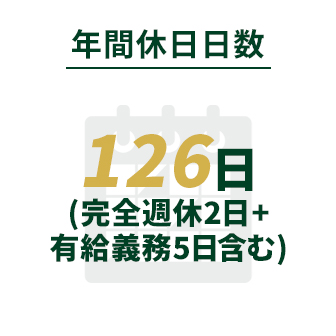 年間休日121日(自社カレンダーによる) 完全週休2日制(月曜・火曜定休) GW休暇、夏季休暇、年末年始休暇 有給休暇(計画的付与制度あり) |